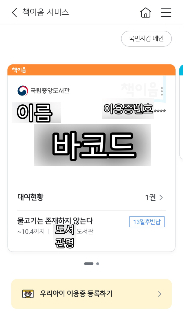 모바일 도서관 이용증 만들기 - 책이음 서비스