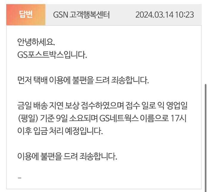 오늘은 GS반값택배 지연보상에 대해 포스팅해 봅니다
