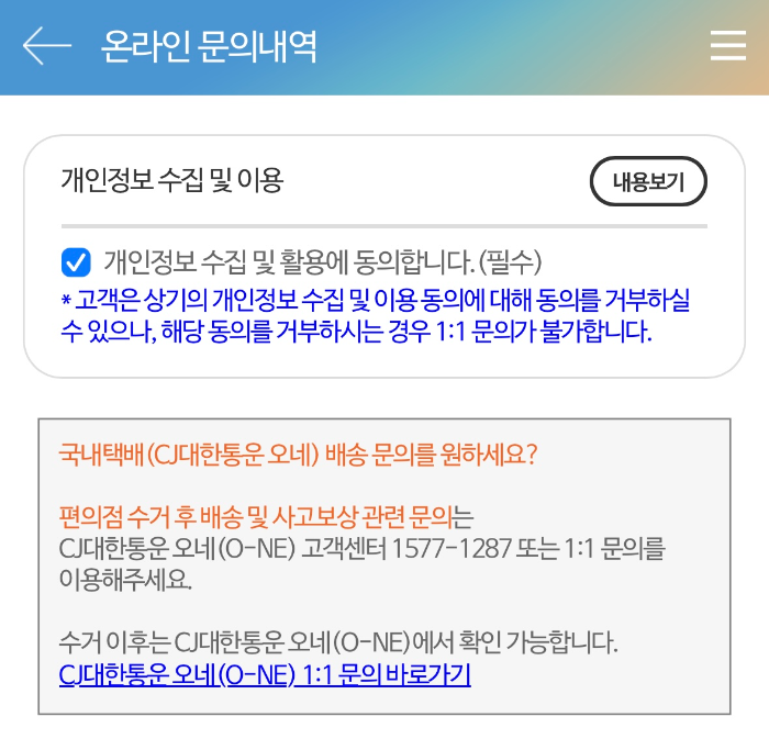 ② 하단의 반값택배/픽업고객센터의 온라인문의 클릭 후 문의 작성