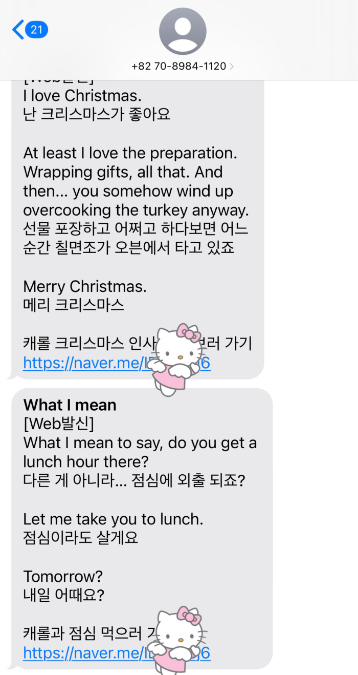 음성을 듣고 메시지 속 링크를 클릭하여 폼을 작성하면, 캐롤 CGV 예매권을 추첨을 통해 증정한다고 해요