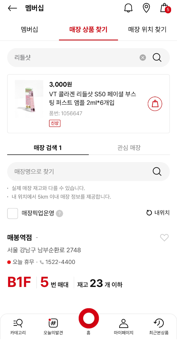 매장 검색도 마치면, 위치와 재고가 바로 뜹니다:)