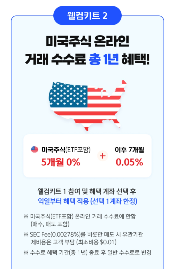 1년 동안 미국주식 온라인 거래 수수료 혜택을 받을 수 있습니다.