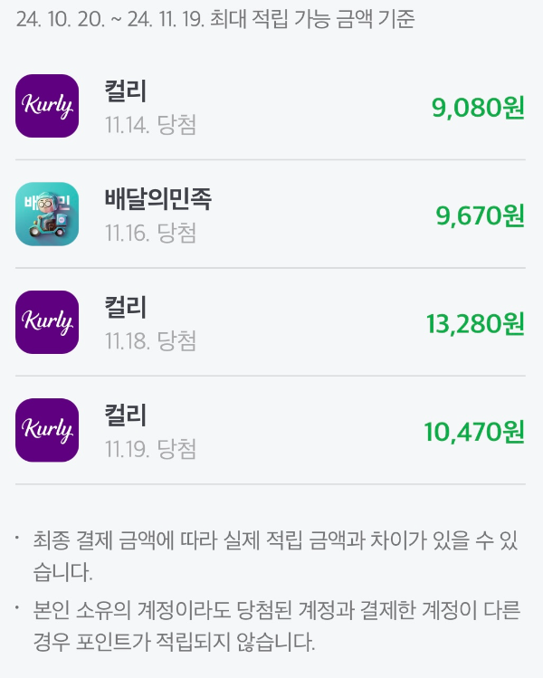 나중에 체크해서 적립된 포인트가 제대로 들어왔는지 확인 한 번 해보세요!