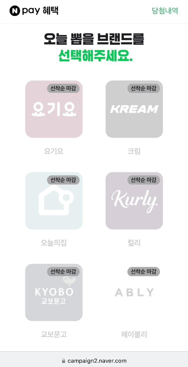 거의 1분 마감컷이니, 58~59분에 접속하셔서 오후 2시가 되자마자 원하는 브랜드를 클릭해야 해요!