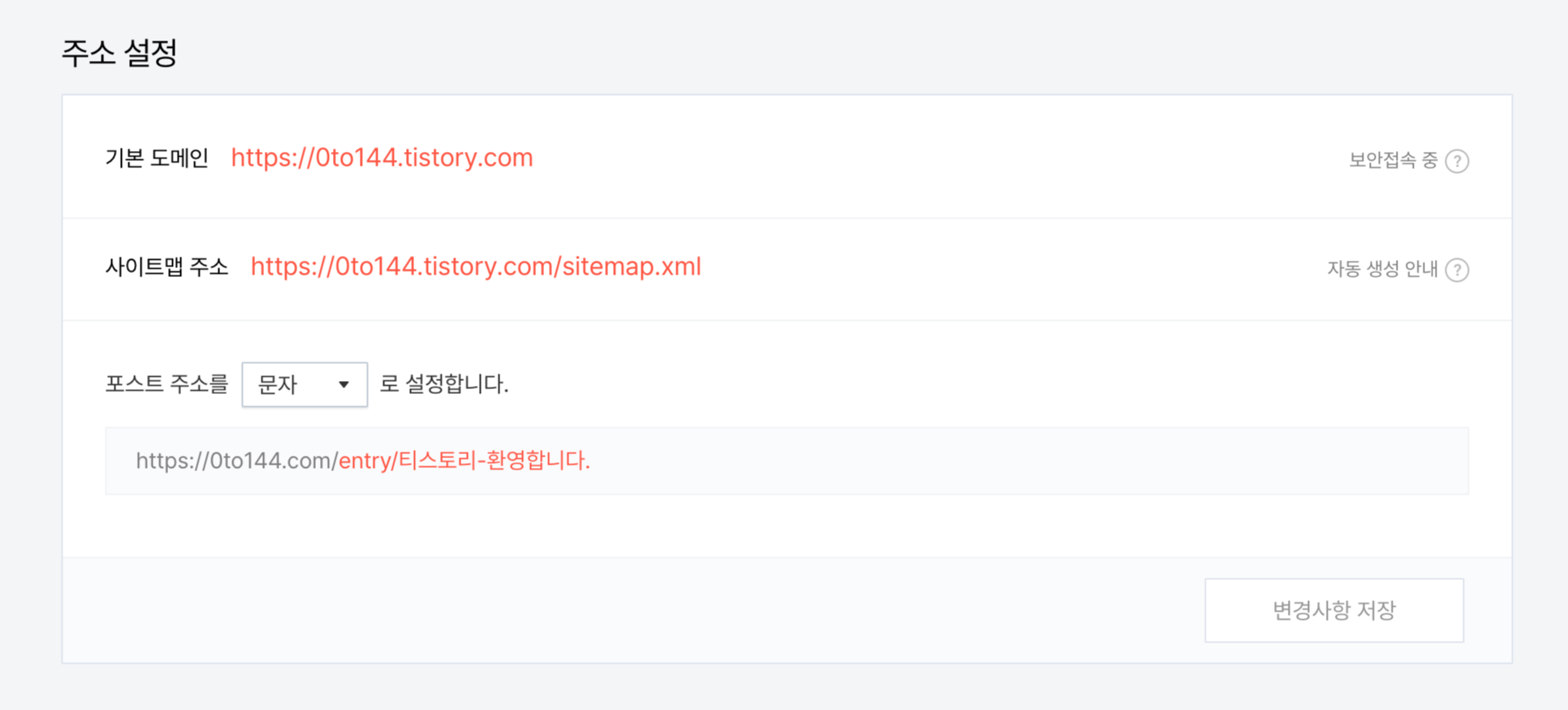 이건 개인 도메인(기본 티스토리 도메인은 불가)을 설정했을 때만 가능하며,