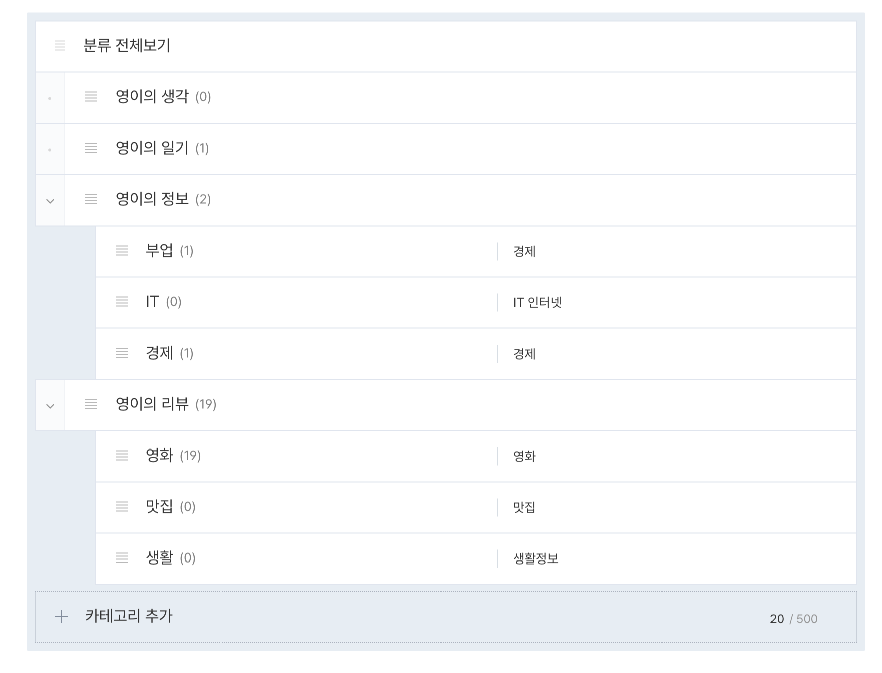 6. 카테고리 설정 : 관리-카테고리 관리